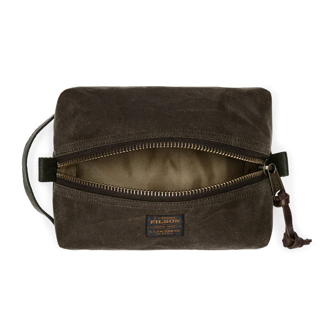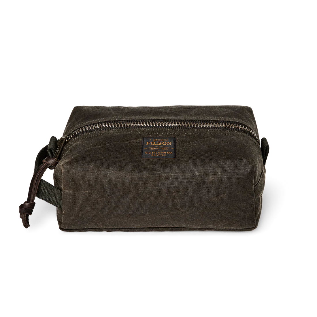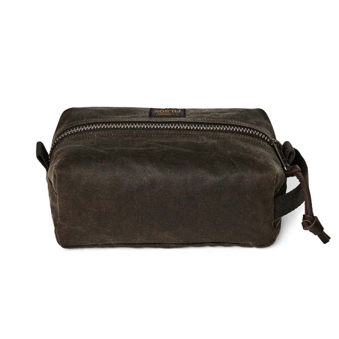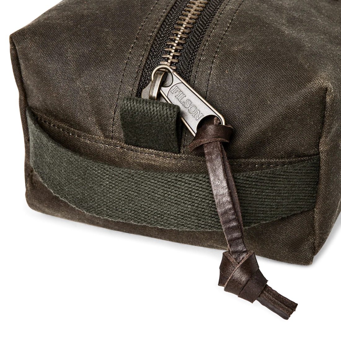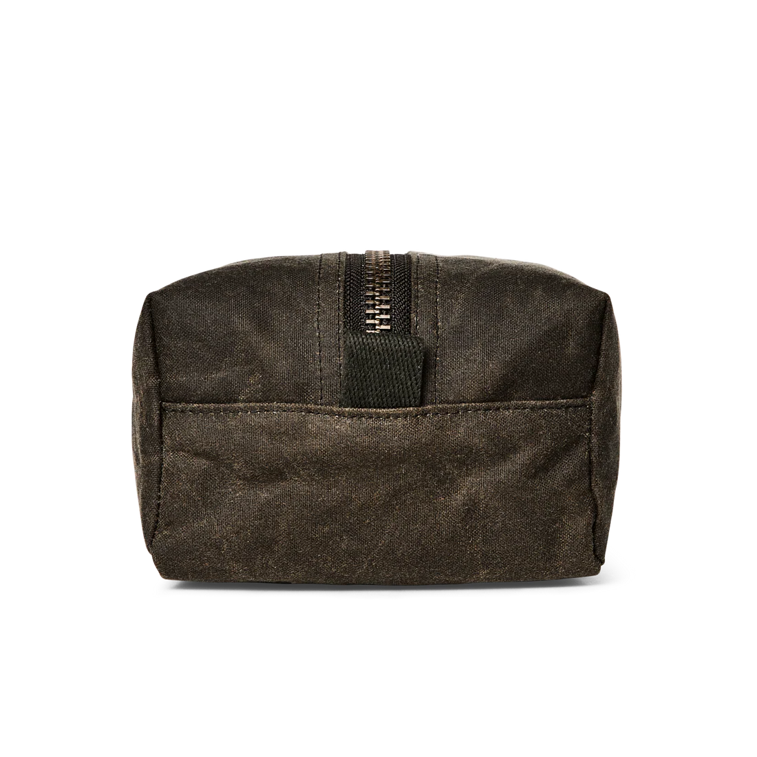 The Tin Cloth Travel Kit is a lighter-weight dopp kit that carries travel essentials for a lifetime of journeys. It's made with our iconic waxed canvas that's protected foresters, sportsmen, and tradesmen from harsh weather, brush, and abrasion for more than a century. It's fully lined with nylon to protect contents, and secures with a heavy-gauge metal YKK® zipper. The cotton-webbing grab handle doubles as a loop for hanging. Bridle Leather zipper pull.